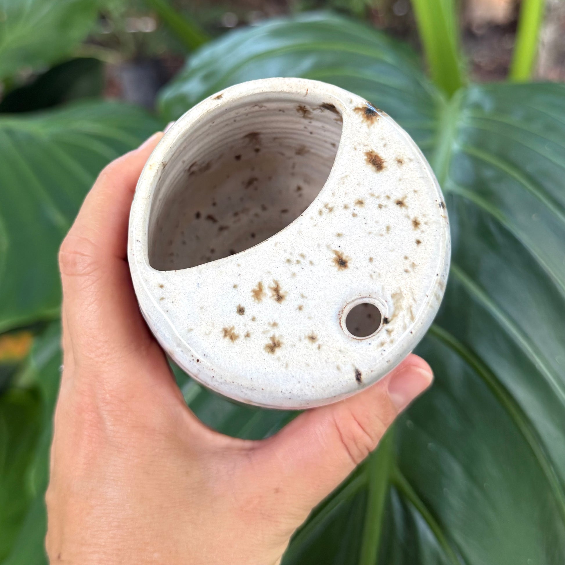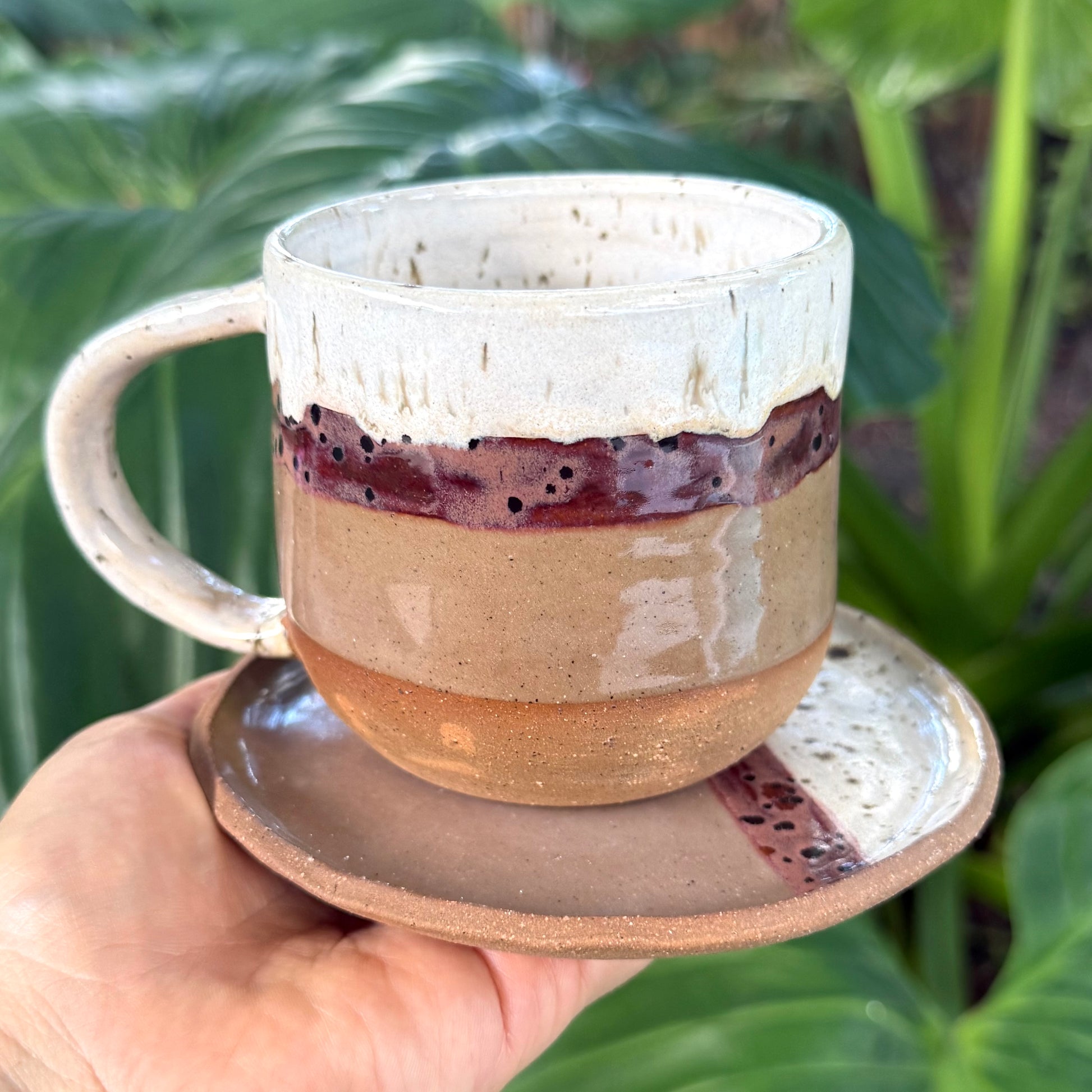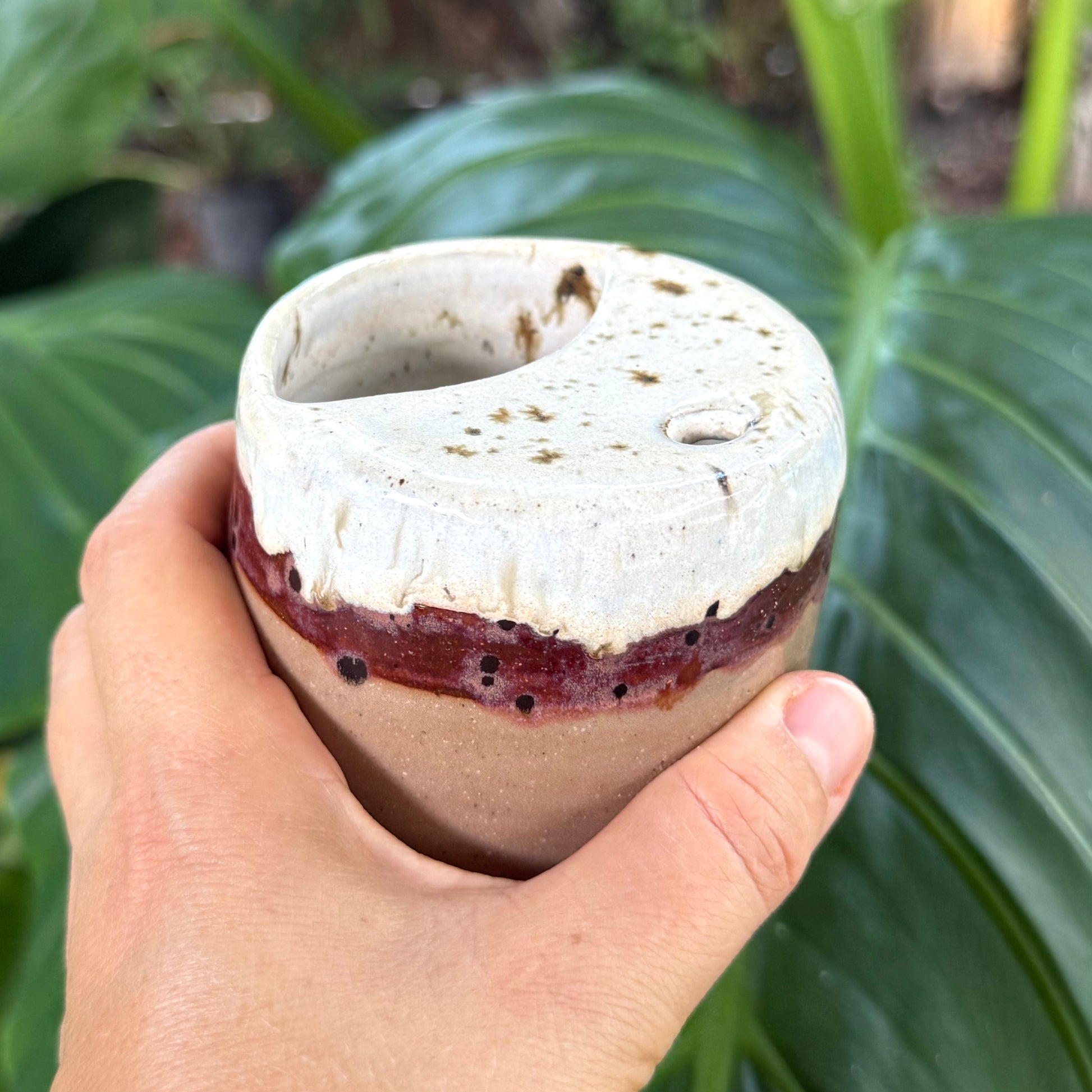 Each piece is hand-thrown on the wheel, glazed by hand, and fired with care in Noosa, QLD. Made in small batches, every mug and travel cup is unique — slight variations in size, glaze movement, and speckling reflect the character of handmade pottery.